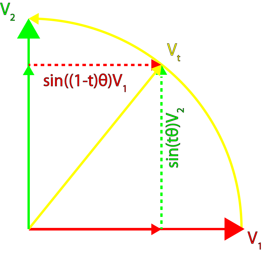 the second comment is the beautiful plot of vector Vt in the spherical interpolation. It is a pity to draw V1 and V2 as orthogonal.